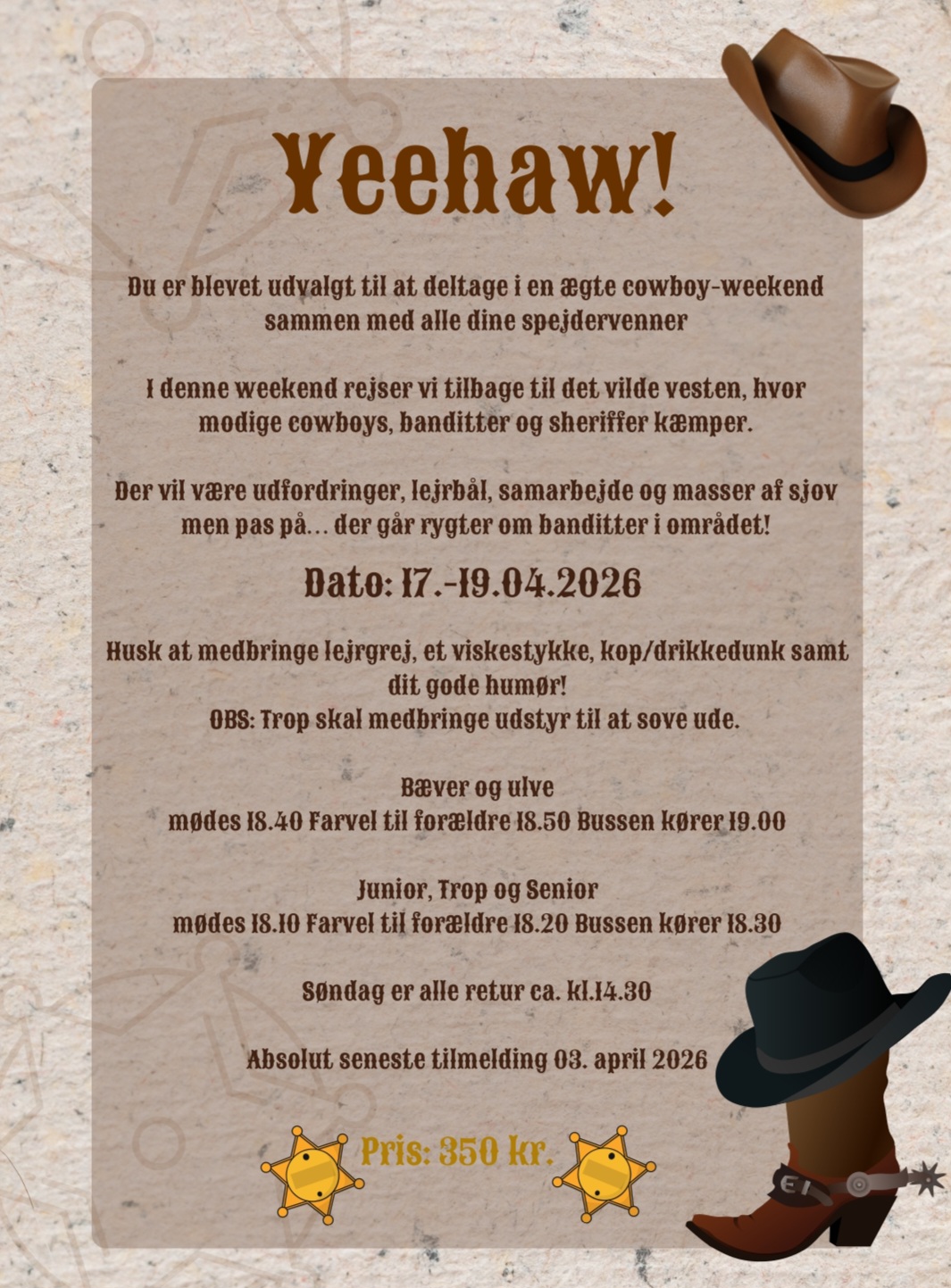 Du er blevet udvalgt til at deltage i en ægte cowboy-weekend sammen med alle dine spejdervenner.